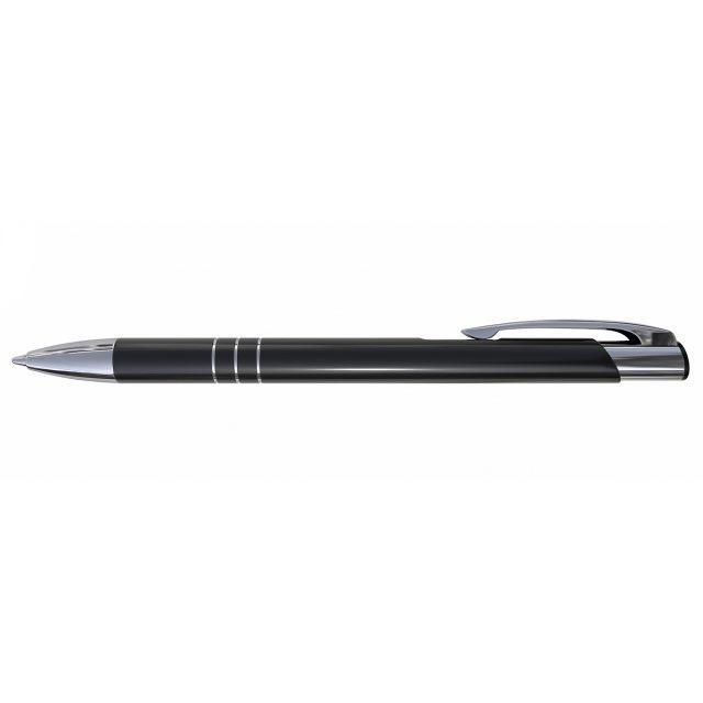 Pix retractabil metalic ptr. promo, albastru, corp negru, varf 0,7mm, Prestige Kalipso
