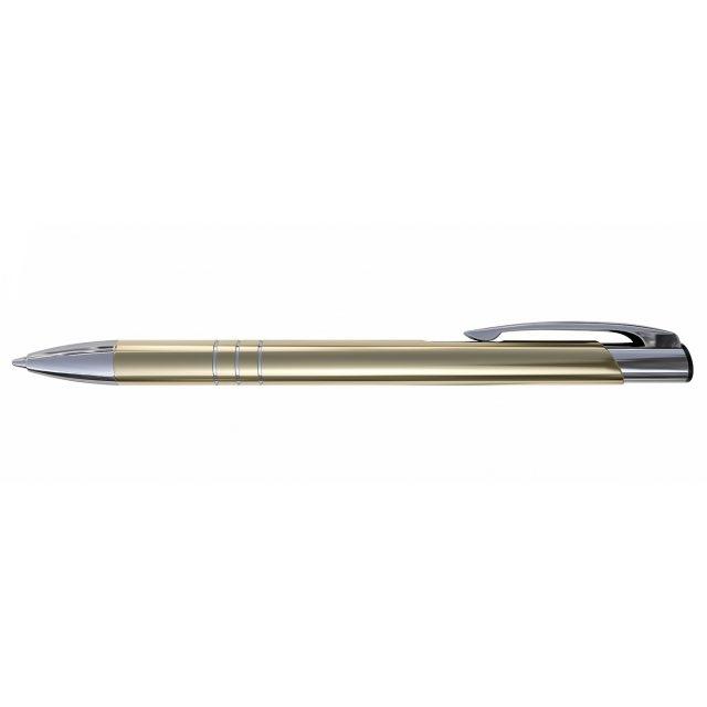 Pix retractabil metalic ptr. promo, albastru, corp auriu, varf 0,7mm, Prestige Kalipso