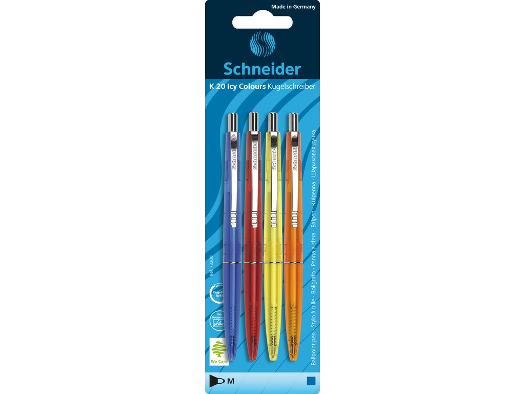 Pix retractabil, albastru, 4 buc/set, corp transparent color, varf 0,4mm, blister, K20 Frosty Schnei