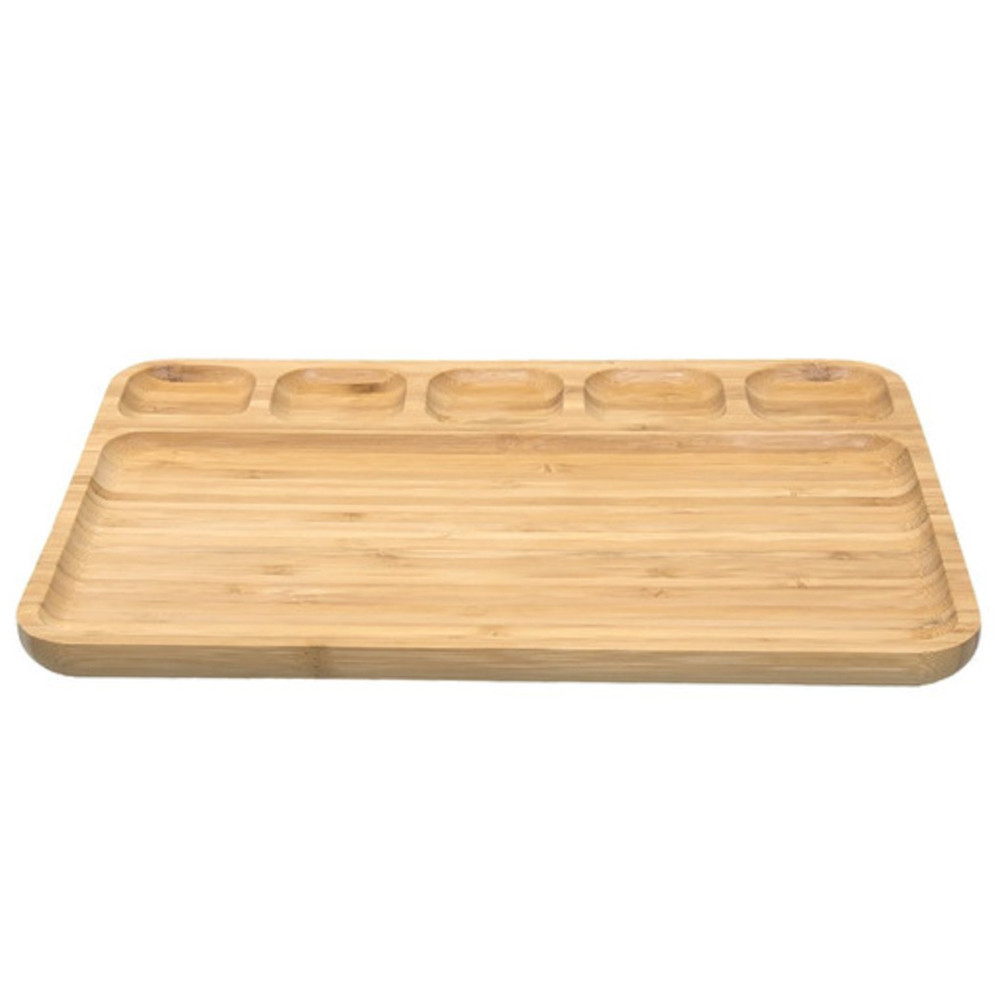 Platou Pufo din lemn de bambus pentru servire cu 6 compartimente, 33 x 23 cm, maro