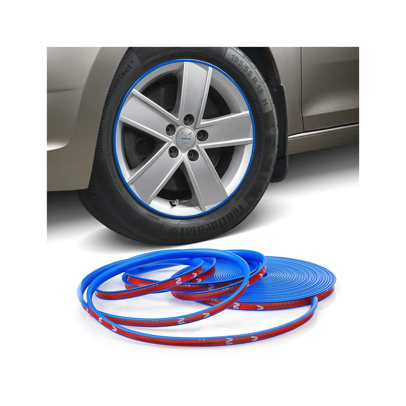 Inele de protectie si decor jante, adezive, din plastic flexibil - albastru