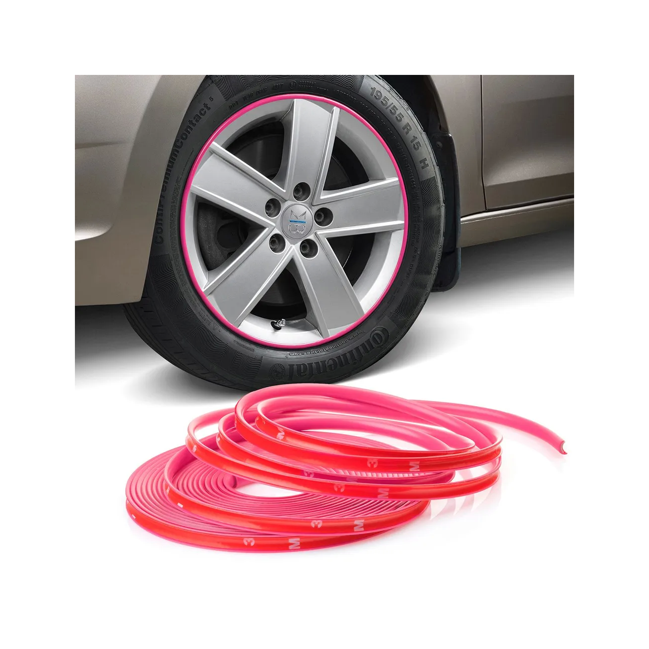 Inele de protectie si decor jante, adezive, din plastic flexibil - pink