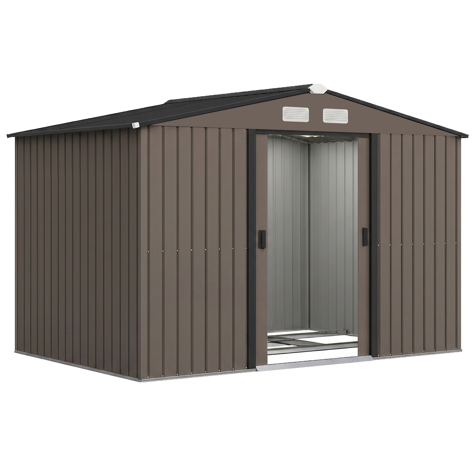 Outsunny Magazie de Grădină din Oțel cu 2 Uși Glisante, Maro | Aosom Romania
