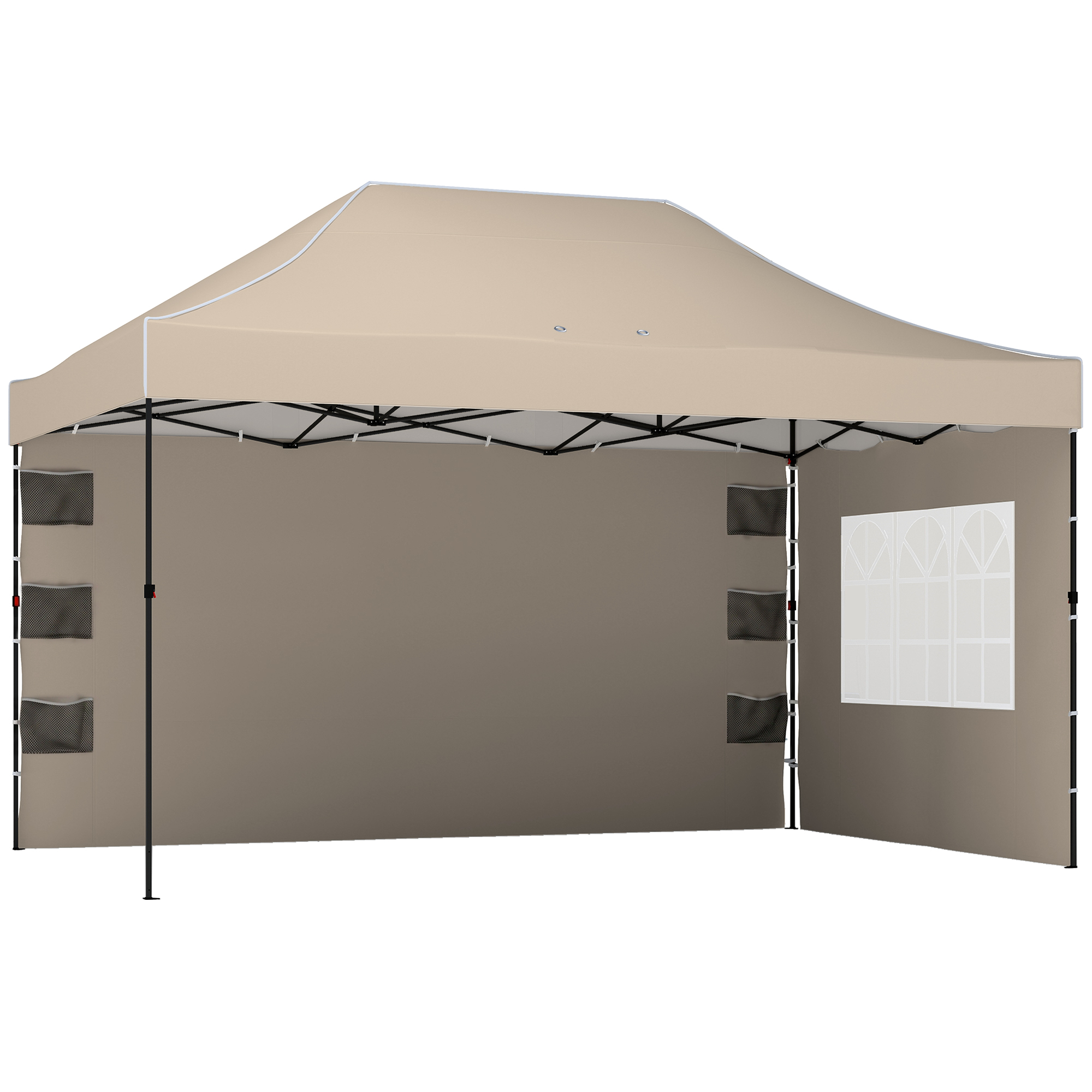 Outsunny Pavilion 3x4,3m, Acoperiș UPF50+, Pereți, Geantă cu Roți, Tenda Grădină, Maro Nisipiu | Aosom Romania