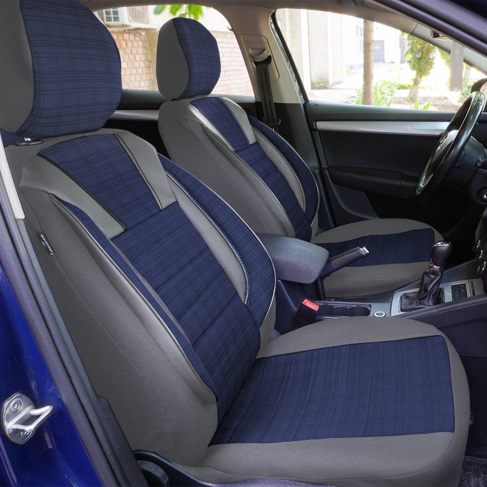 Set huse scaun truck umbrella pentru man seria tgx 6 piele ecologica neagra + velvet albastru (2021-)