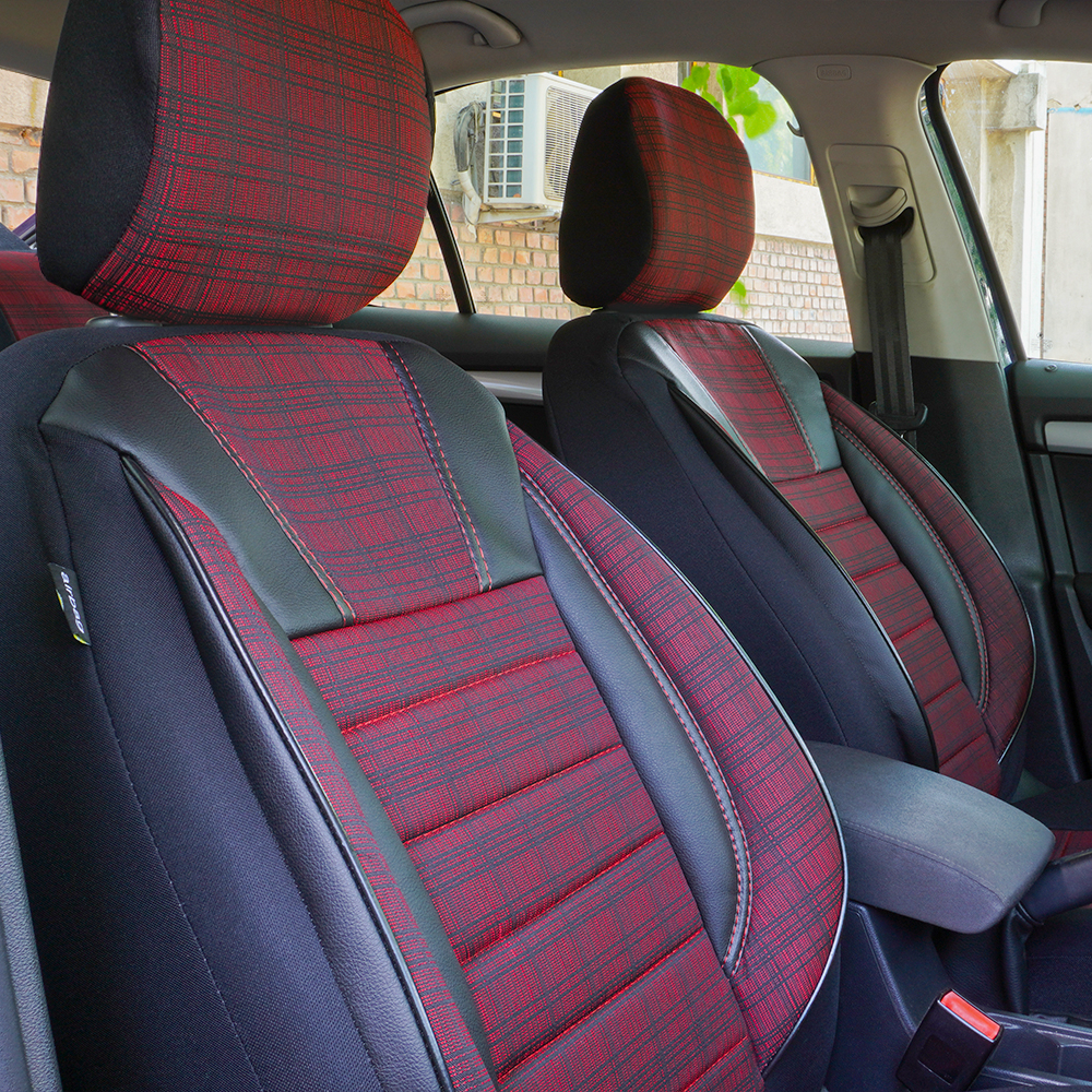 Set huse scaun auto ieftine, universale 9 piese, model v-style - rosu