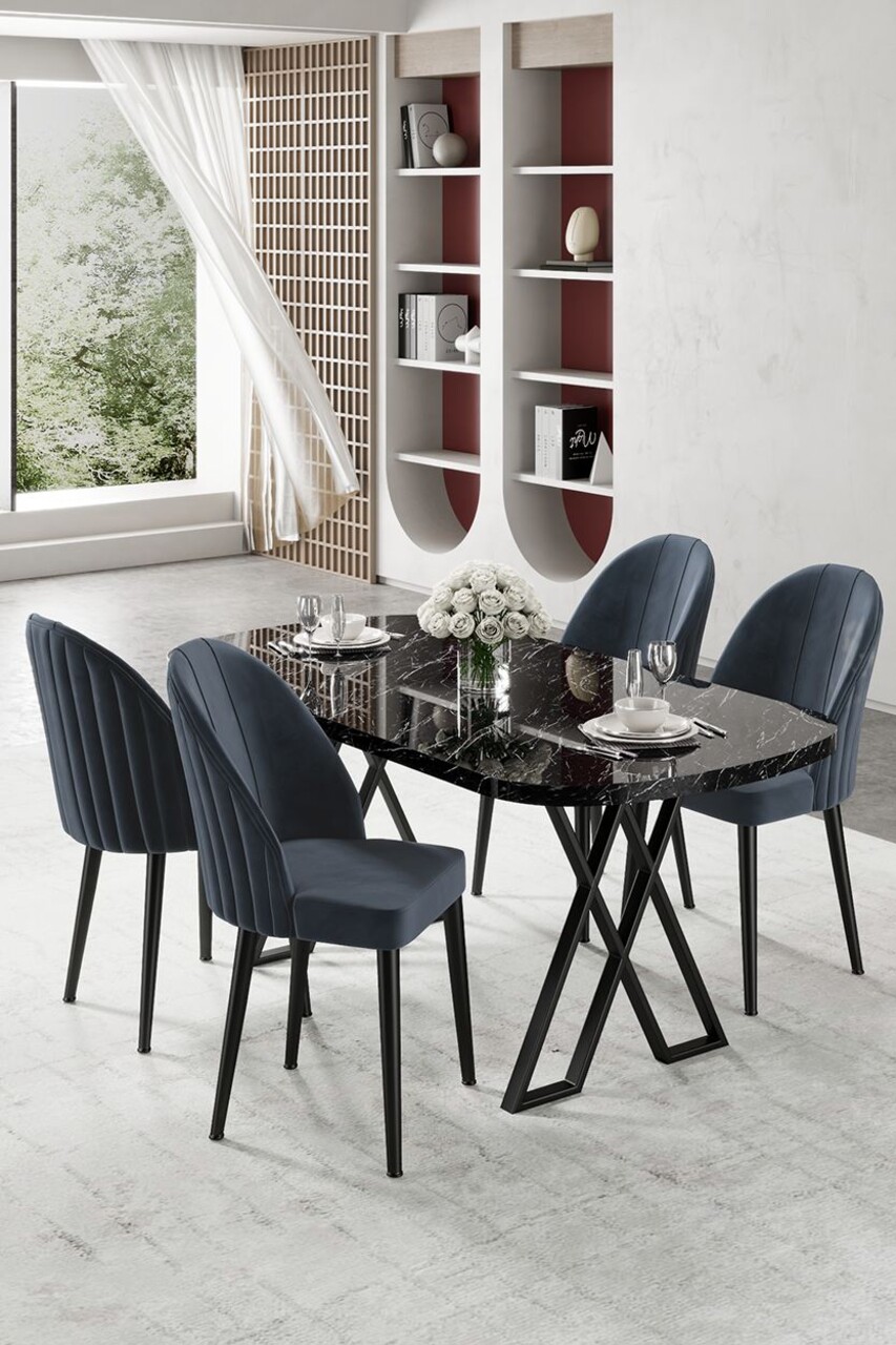 Set masă și scaune (5 bucăți), Hanah Home, Kaye, Marmură neagră / Antracit