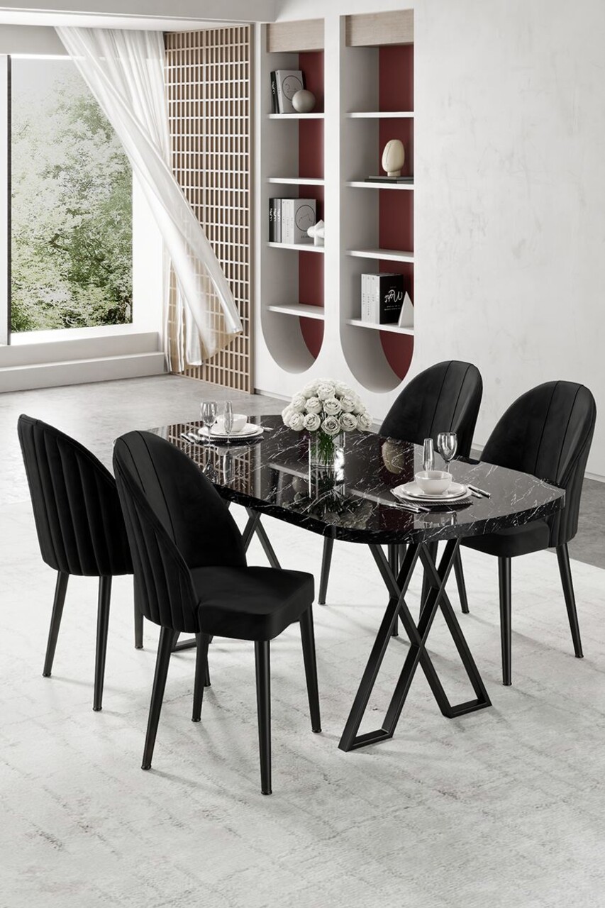 Set masă și scaune (5 bucăți), Hanah Home, Kaye, Marmură neagră / Negru