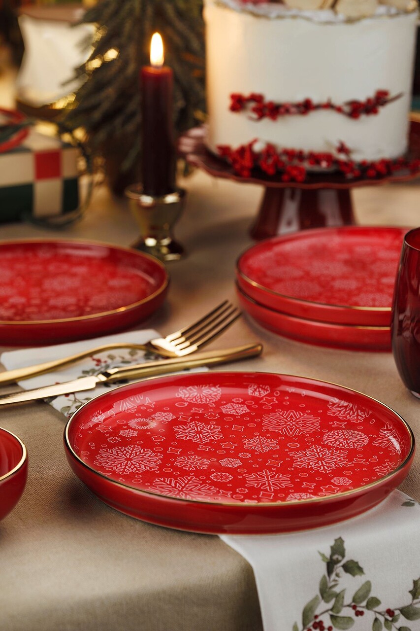 Set de servire pentru tort (4 piese), Lessentiel Maison, 710KTP4567, Rosu