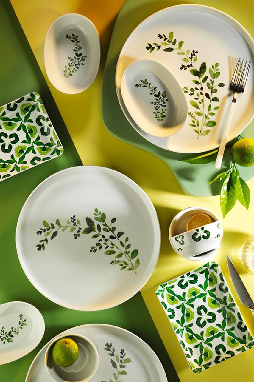 Set de mic dejun (16 bucăți), Lessentiel Maison, 710KTP9802, Bol Joker: 10 cm (3 bucăți), Alb/Verde