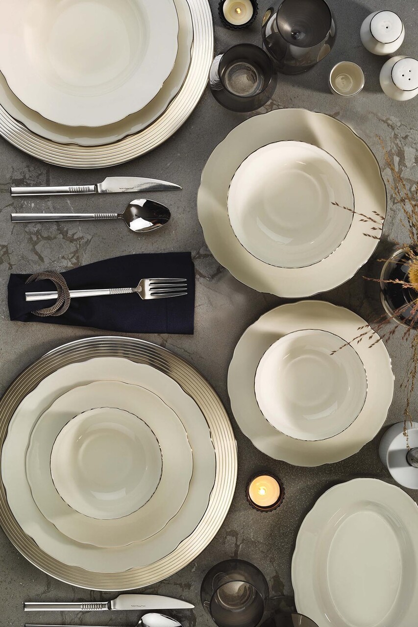 Set de cină (58 bucăți), Lessentiel Maison, 719KTP9751, Farfurie adâncă: 23 cm (12 bucăți), Alb / Crem