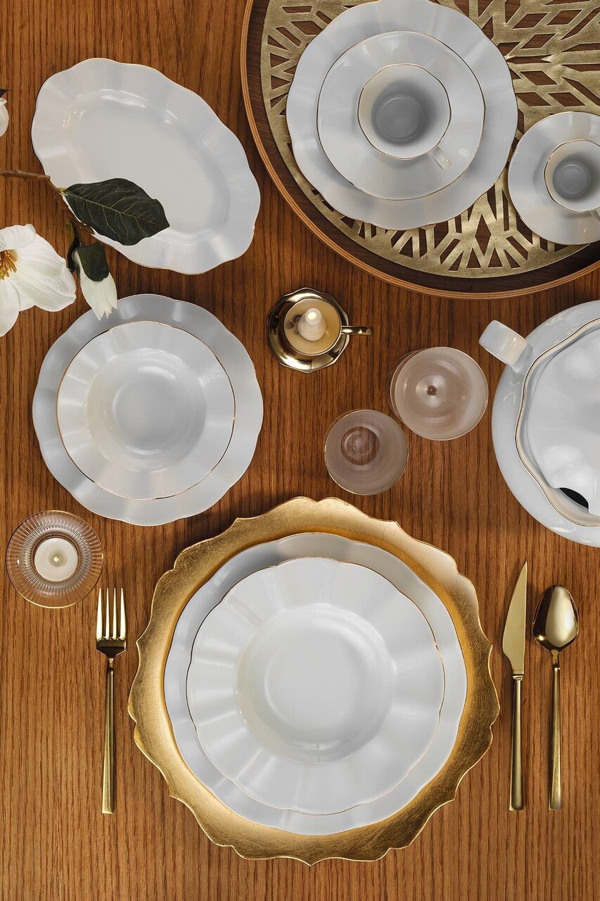 Dinner Set (83 Pieces), Lessentiel Maison, 710KTP9732, Capac pentru bol pentru serviciu de supă (1 bucată), Alb/Auriu