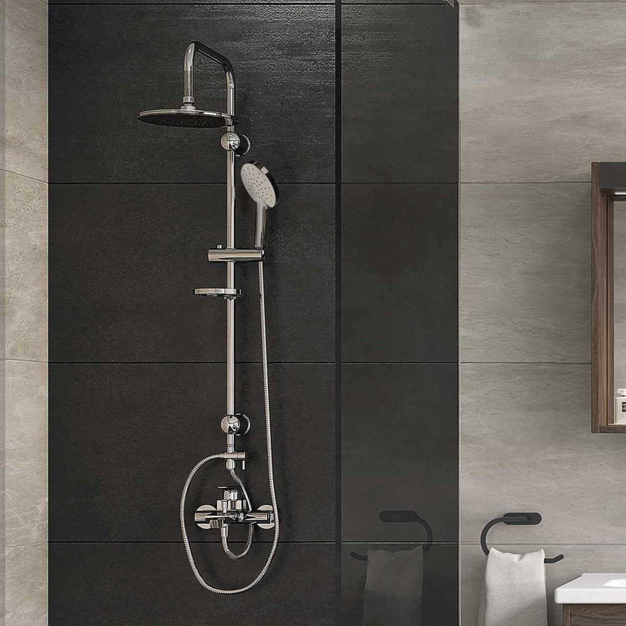 Set de baterii de duș, Lessentiel Maison, HCSH630SM, Negru