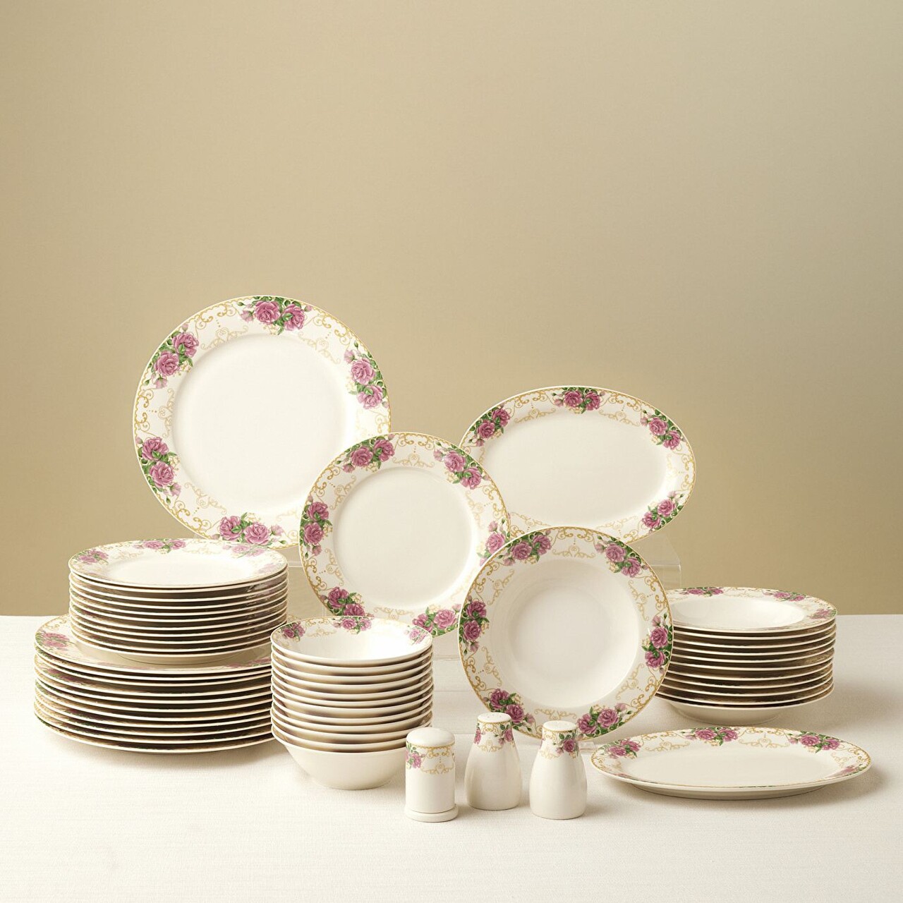 Set de cină (53 bucăți), Lessentiel Maison, 216KRC1275, Farfurie de cină: 20,2 x 20,2 x 3,2 cm (12 bucăți), Multicolor
