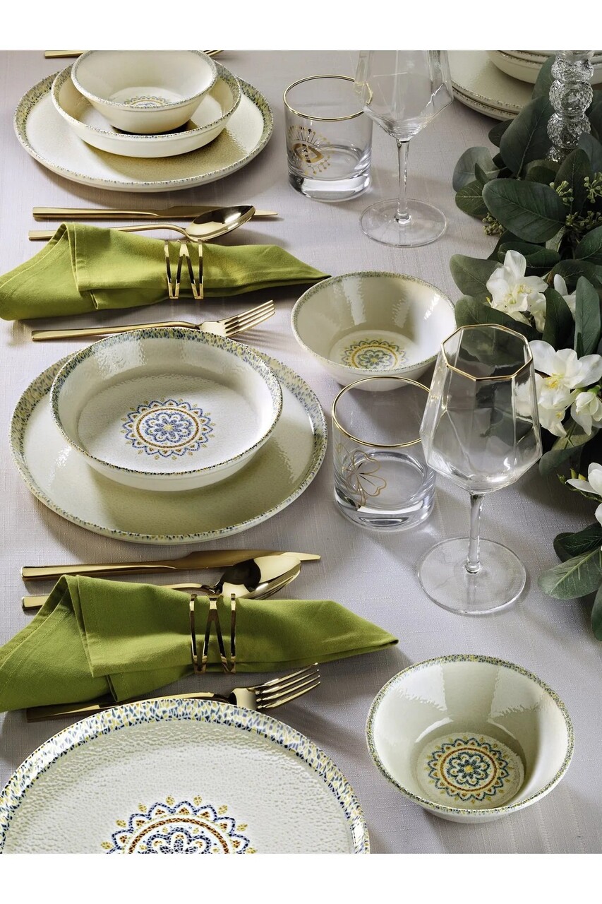 Set de cină (27 piese), Lessentiel Maison, 710KTP9748, Farfurie: 21 x 21 cm (6 bucăți), Alb / Auriu / Verde / Mov