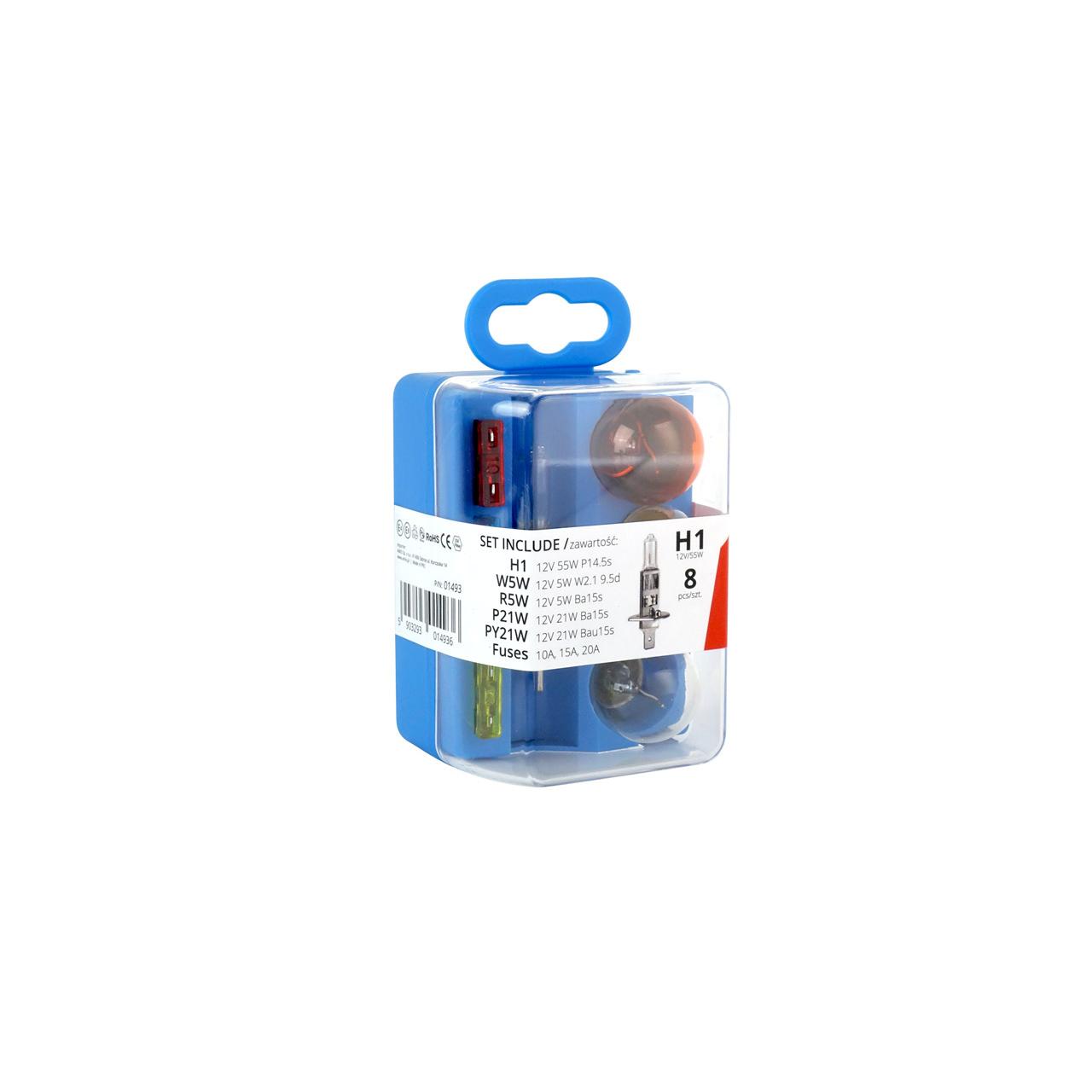 Set rezerva becuri si sigurante 19 buc h1 si h7