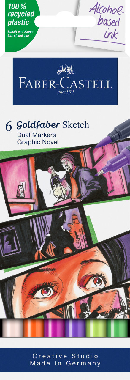 Markere cu 2 varfuri (rotund+pensula), 6culori/set, Novel, Goldfaber Faber-Castell - FC164810