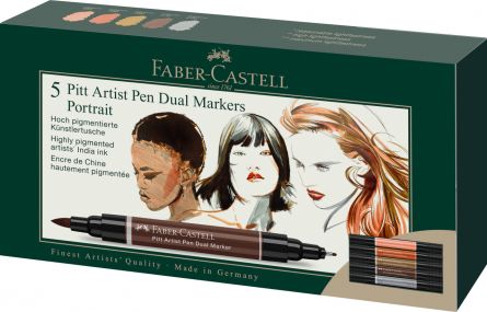 Markere pe baza de apa, 5culori/set, 2 varfuri, Portret, Pitt Artist Pen Dual Faber Castell FC162009
