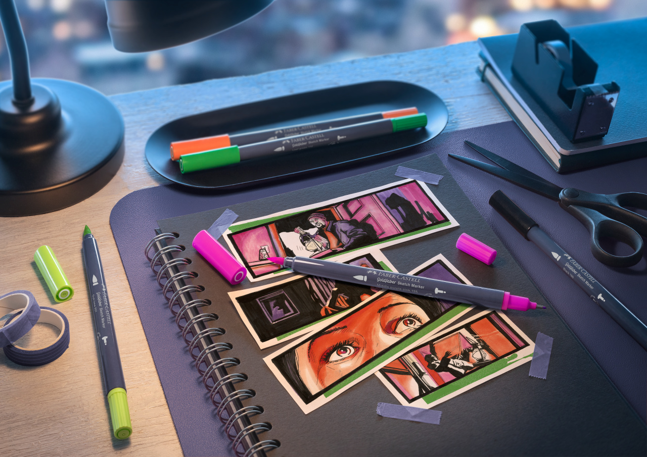 Sketch marker cu 2 varfuri, violet purpuriu, 136, Goldfaber, Faber Castell- FC164737