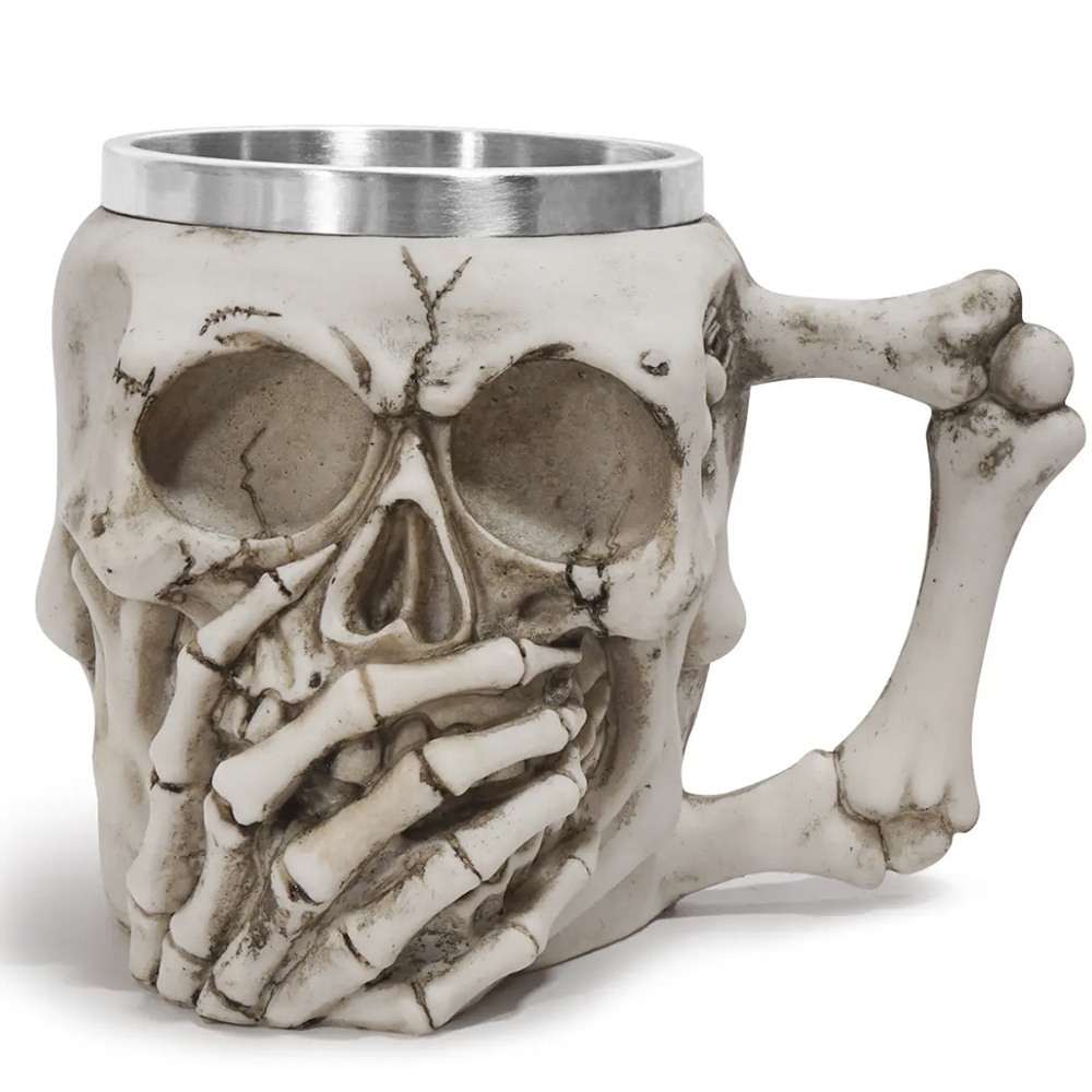Halba de bere metalica Pufo Skull Don’t Speak in forma de craniu, 380 ml