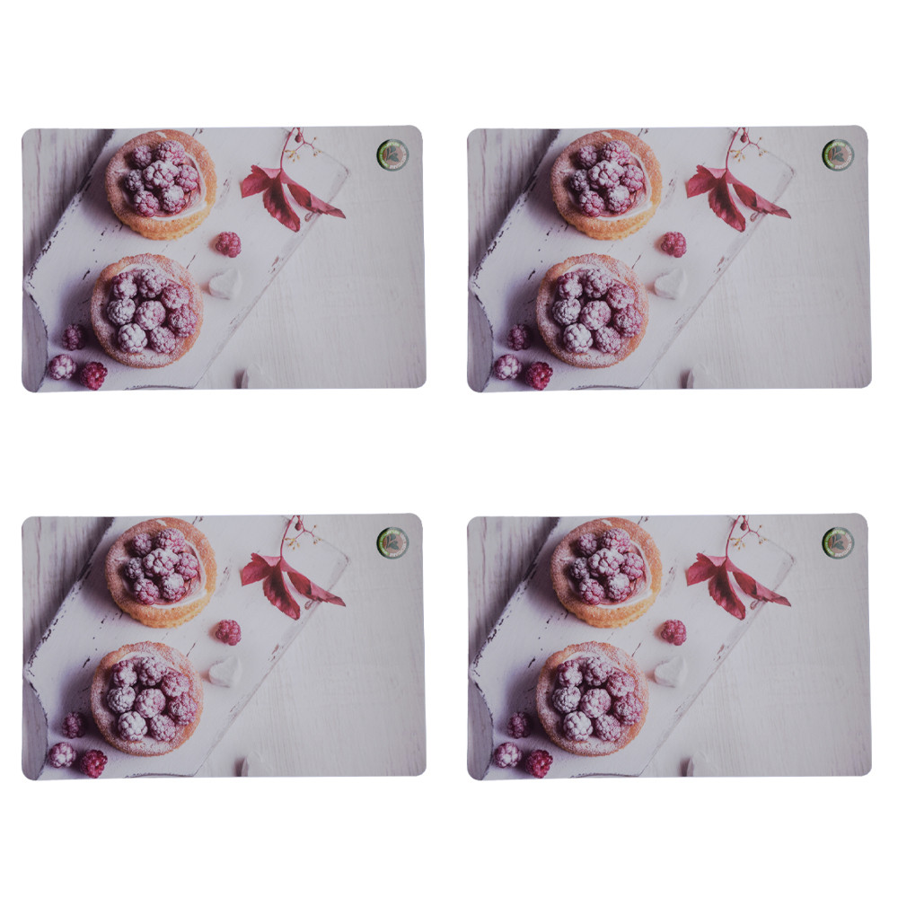 Set suport farfurie pentru servirea mesei, model Pufo Sweet Raspberry, 4 bucati, 44 x 29 cm
