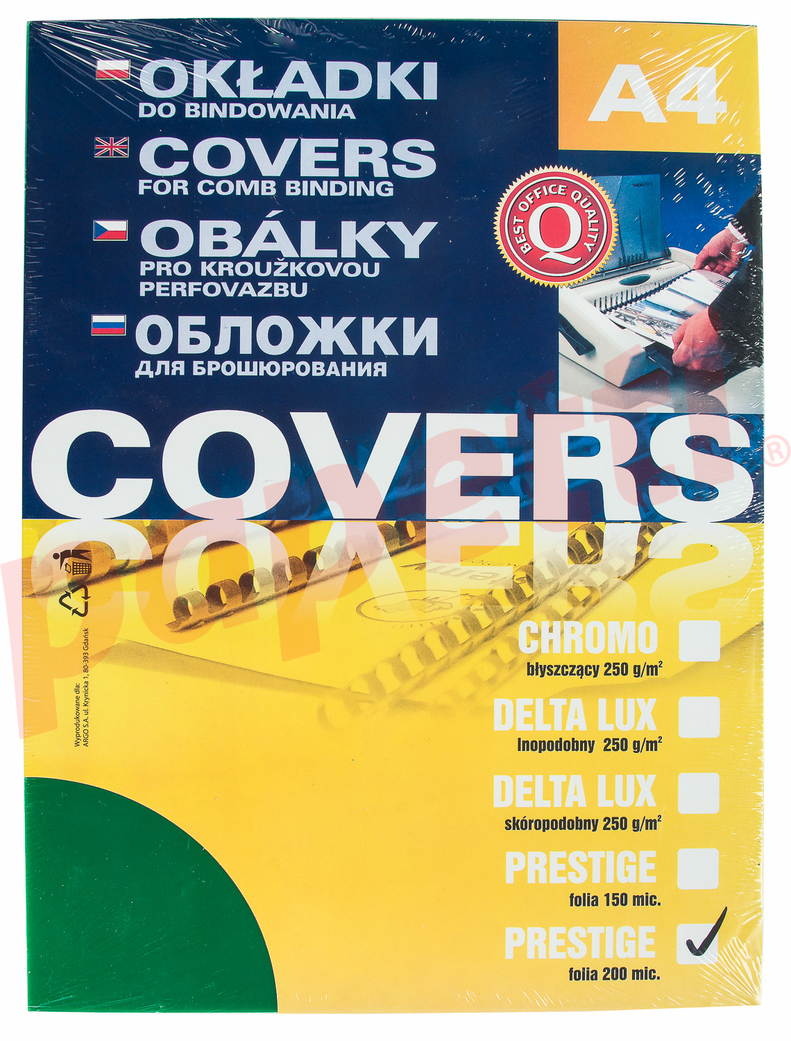 Coperti din plastic transparent galben, A4, 200 microni, pentru indosariere, 100 coli/top