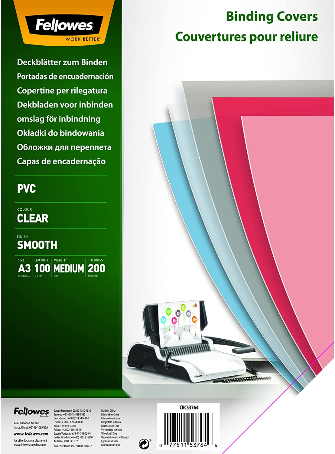 Coperti din plastic transparent cristal, A3, 200 microni, pentru indosariere, 100 coli/top Fellowes