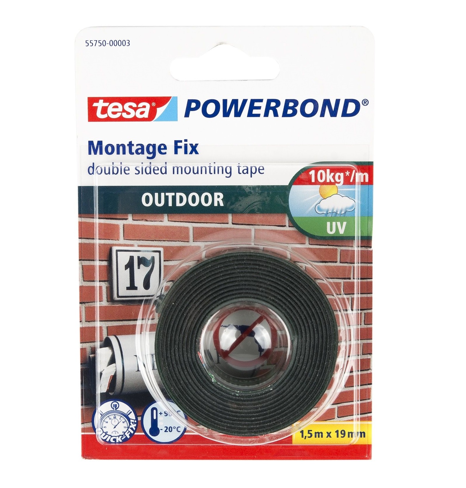 Banda dubluadeziva pe suport burete, pentru exterior, transparent, 19mm x 1,5m Powerbond Tesa