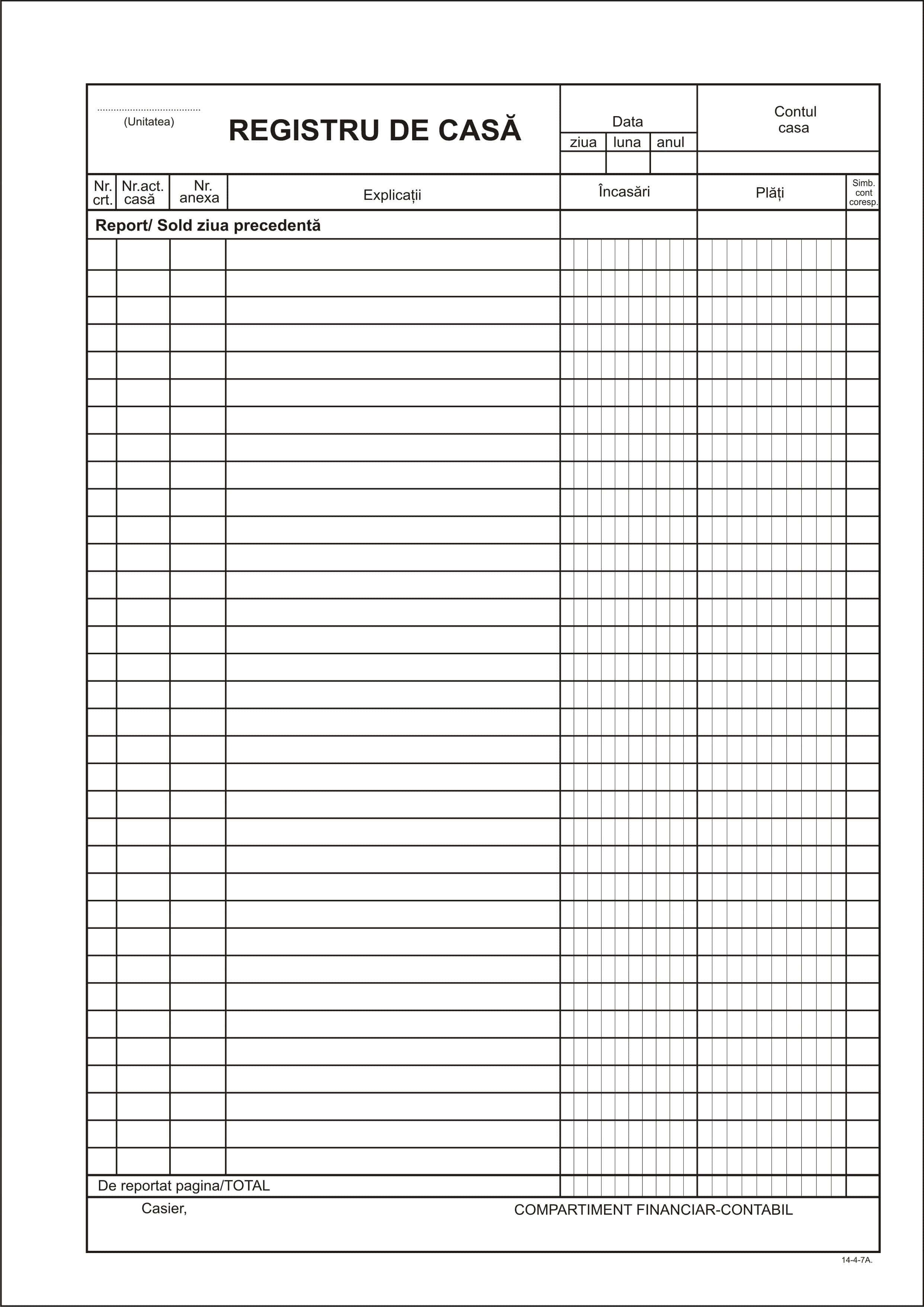 Registru jurnal de incasari si plati A4 vertical