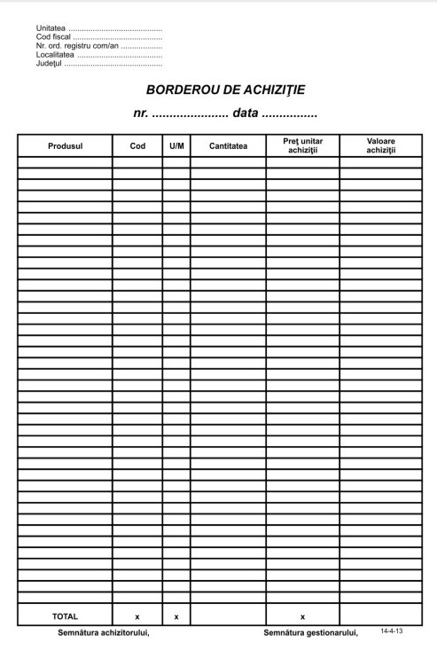 Borderou achizitie A4, vertical, 6 coloane