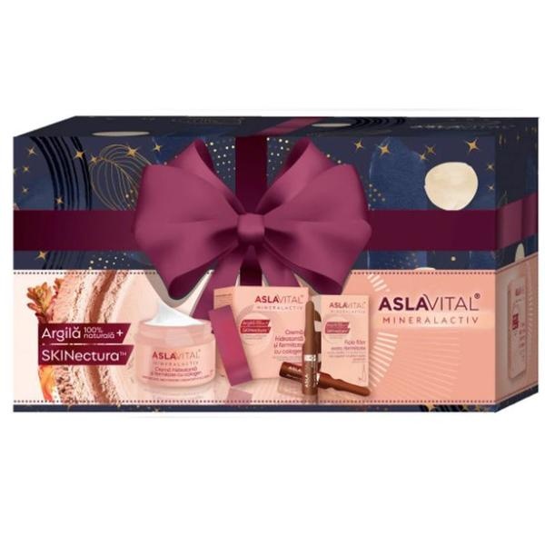 Pachet Crema hidratanta cu colagen si SPF 10, 50 ml+Fiole cu colagen, 2 fiole x 2 ml , Mineralactiv, AslaVital