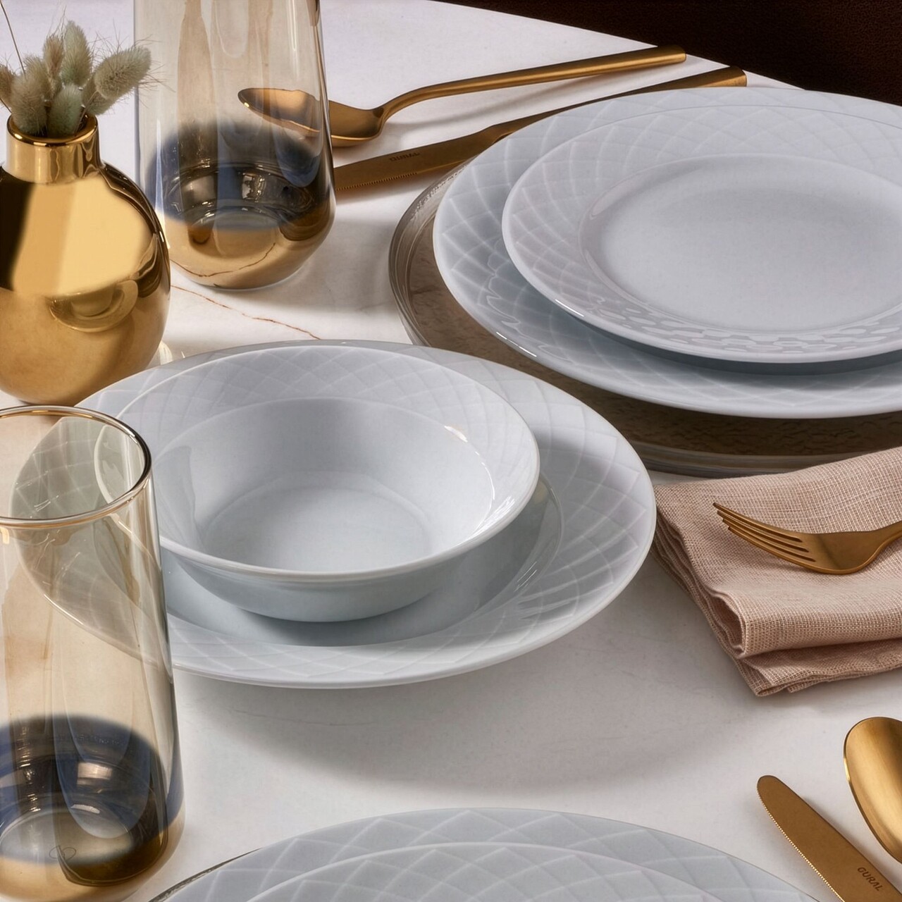 Serviciu de masa, Hermia, 387GRP1409, Farfurie: 22 x 22 x 4 cm (6 bucăți), Alb