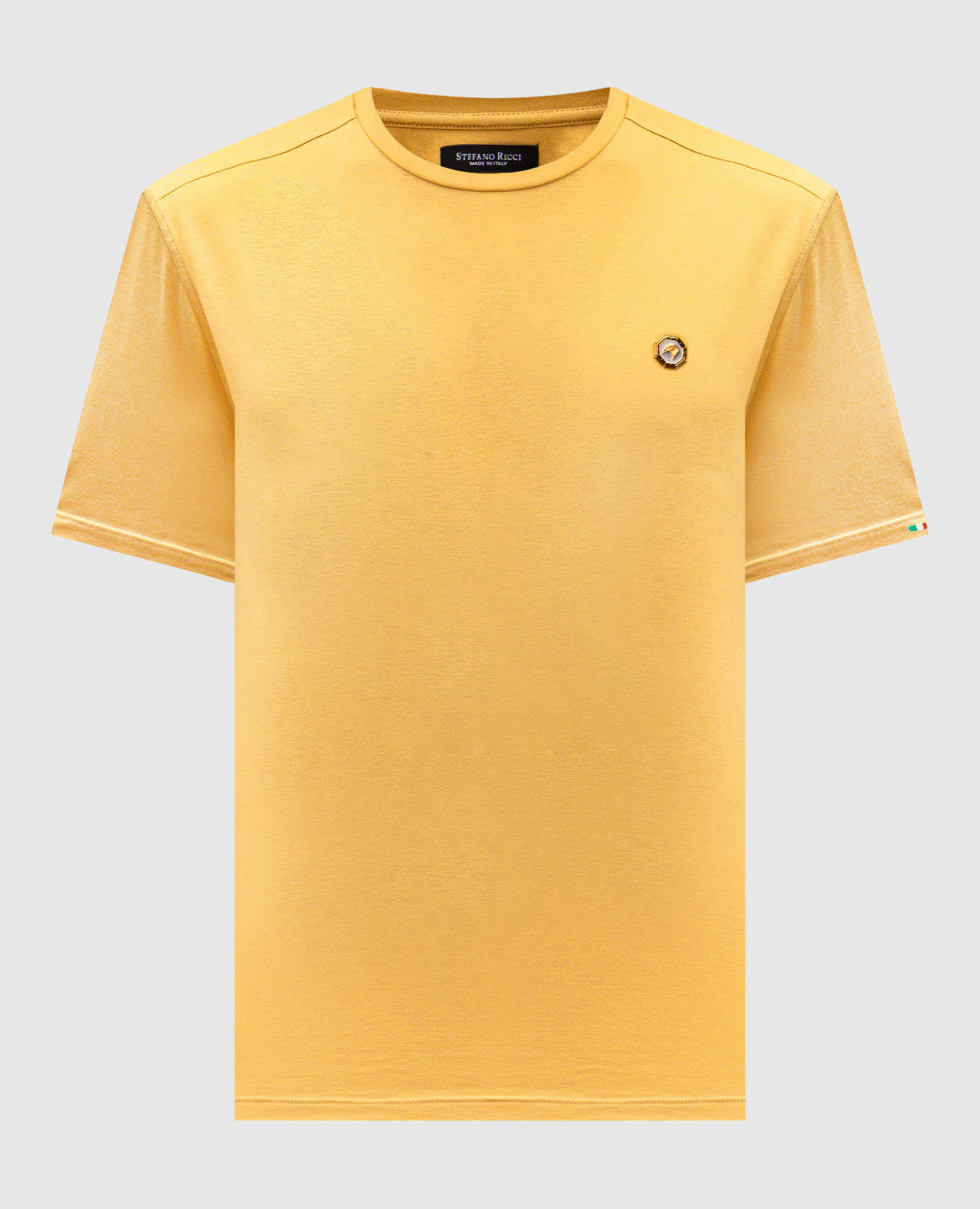 Kids' Yellow Chambray Track Shorts with Stripes Palm Angels