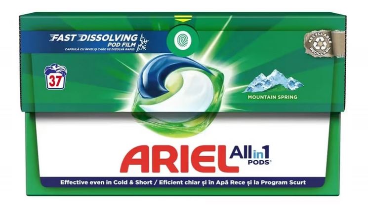 Detergent capsule gel pentru tesaturi, 37buc/cutie, All in 1 Mountain Spring Ariel 54071